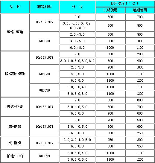 八.铠裝熱電偶(ou)推薦使用溫(wēn)度