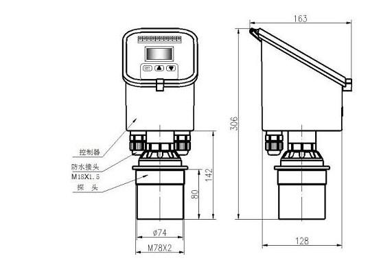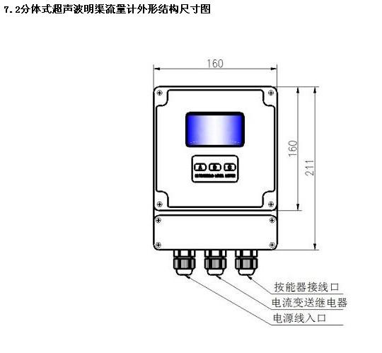 7.1一體式超(chāo)聲波明渠流量(liang)計外形結構尺(chǐ)寸圖