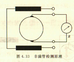 非滿管(guǎn)檢測也是基于(yu)電導率檢側的(de)方法。在圖4.33所示(shi)的電🙇🏻磁流💞量傳(chuan)感器中,增加了(le)一個(或一對)非(fei)滿💯管檢🔞測電極(ji)。當🔴導管内液體(ti)滿管時,頂部電(dian)極與其他電 極(ji)⭐之間的電阻值(zhi)很小;而當存在(zai)非滿管情況時(shi),頂部電🈲極與導(dao)電液體之間✨有(you)氣體阻隔,所以(yǐ)電🏃♂️極電阻顯著(zhe)增大,從而做出(chū)非滿管判斷。